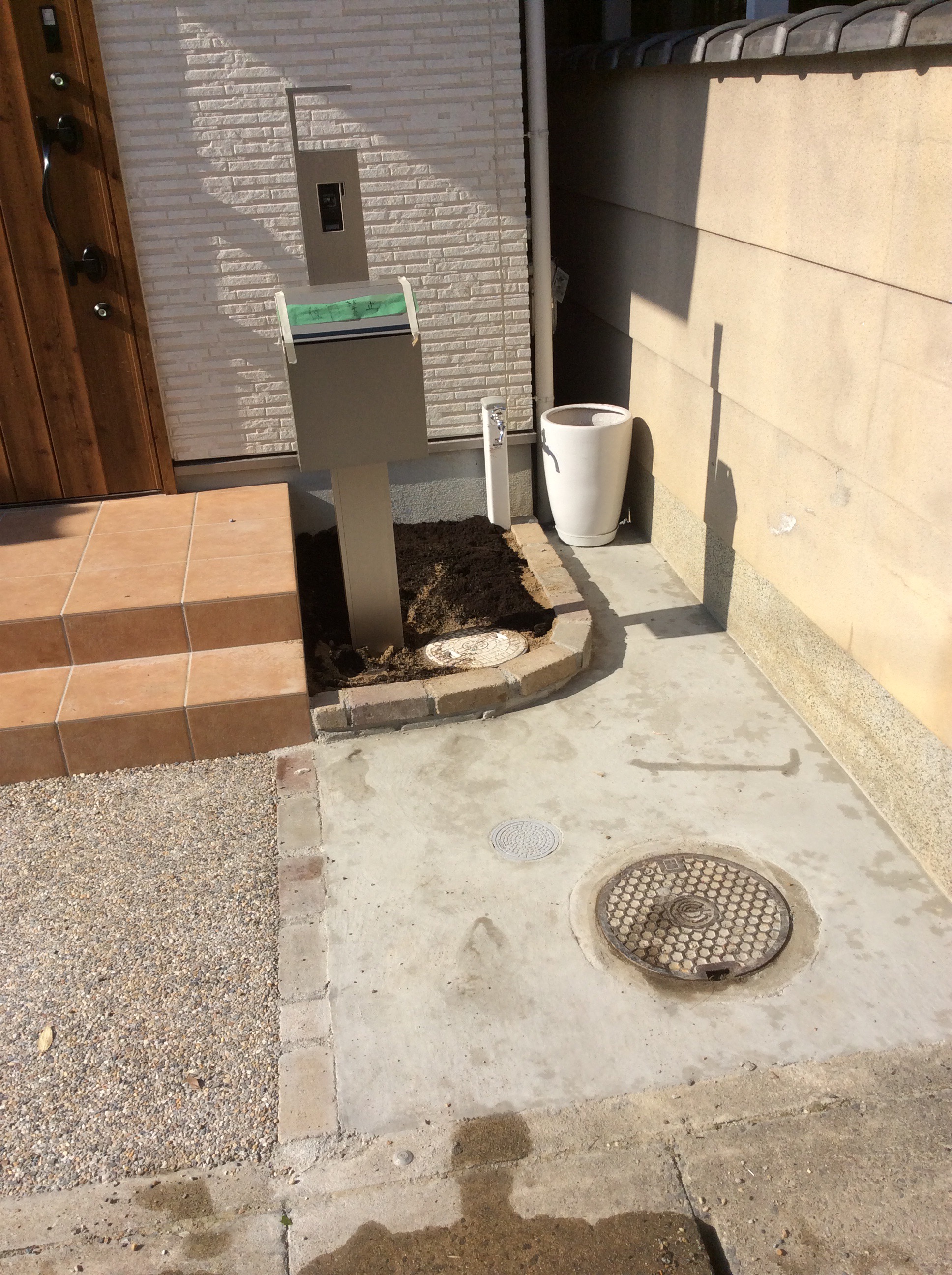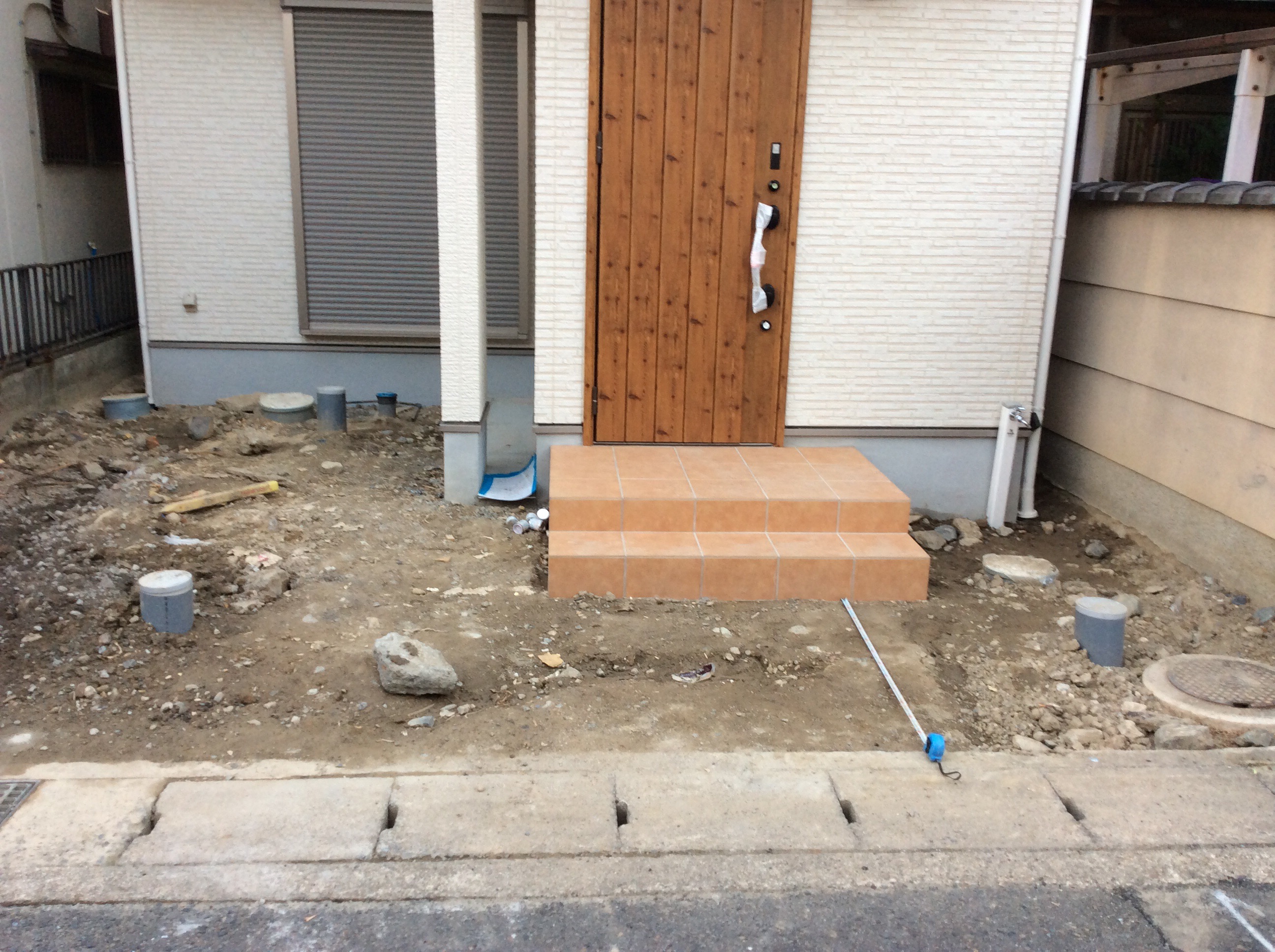 作業前です。道路と家の敷地の少しの段差をつぶしてついでに正面の花壇もつぶして下さいとのことです。